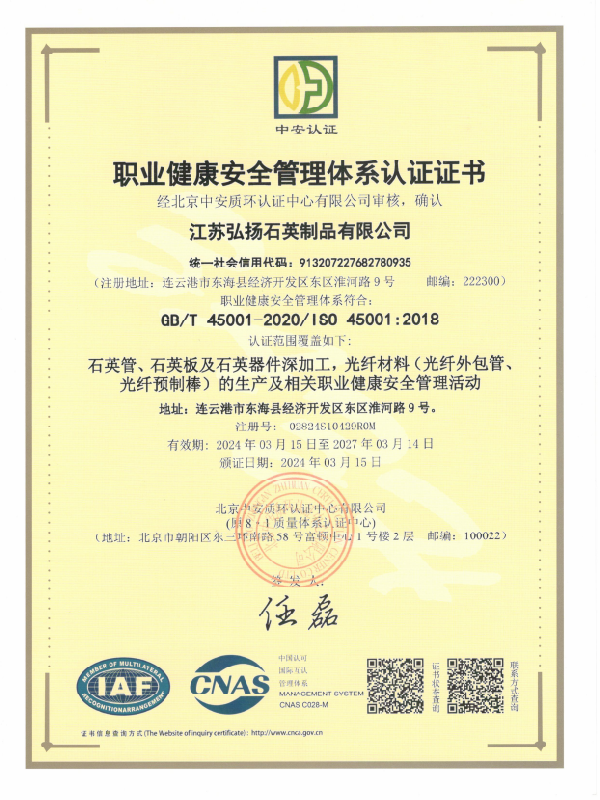 職業(yè)健康安全管理體系認(rèn)證證書