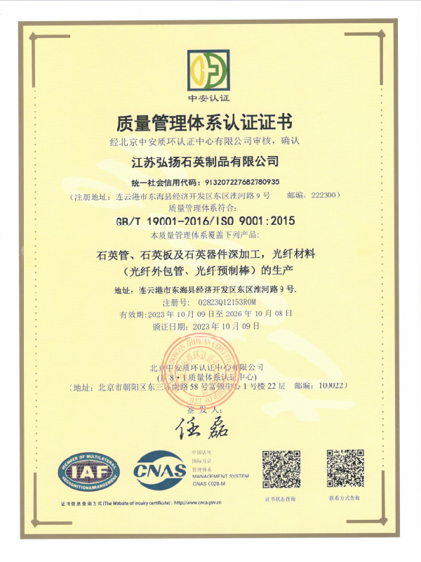 質(zhì)量體系認(rèn)證證書